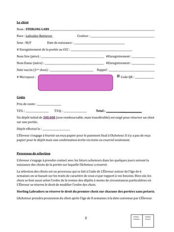 Nous faisons certaines recommandations et donnons certains conseils à nos clients lors de leur départ à la maison avec leur nouveau chiot. Ceci n'est aucunement obligatoire selon notre contrat, mais fortement recommandé afin de garder votre chiot en pleine santé!